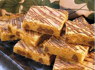 4 Spread remaing 1/3 cup of each chip on top of the blondies and cook an additional 5 minutes. Cool completely; cut into bars.