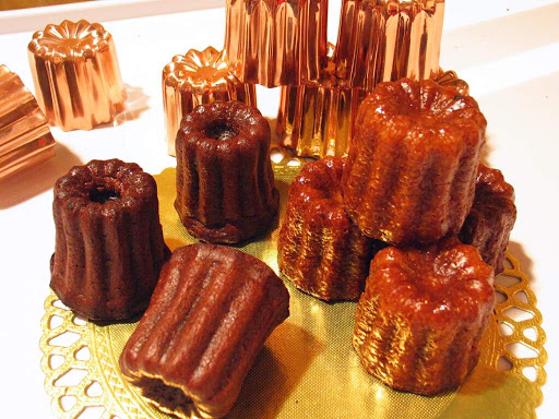 Bake for about 50 minutes, or until the surface of the canneles is dark brown. Remove from the oven, being very careful not to spill any of the hot wax on yourself. (It is wise to keep children and pets out of the kitchen during this part of the process.) Using tongs or an old towel, pick up each mold and tap it upside down to remove the canneles. If it doesn't come out after a few taps, using a paring knife to loosen it from the sides. And...viola! Serve warm from the oven.