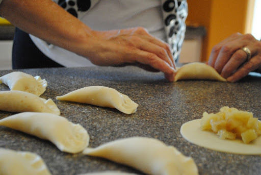 When ready to serve, Mix remaining 1/2 cup of sugar with one of the spice options of your choice. working eight at a time, spoon a heaping tablespoon of the filling onto the lower center of each dough circle. Then, working on at time, brush around the edge of the lower half with water. Fold upper half of dough over filling to make a turnover, and pressing on edges to seal. Repeat with remaining, to make 16 turnovers.