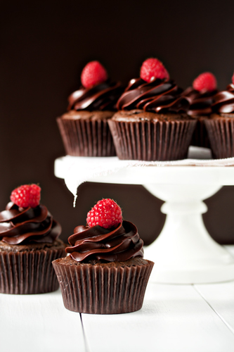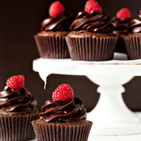 6. Pipe ganache onto cupcakes and garnish with fresh raspberry.