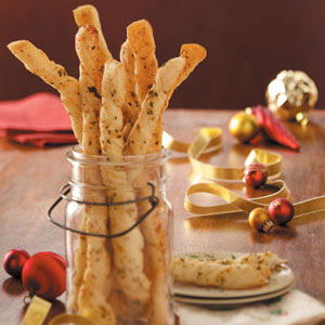 3. In a shallow bowl, combine the butter, cheese, parsley, garlic powder and remaining oil. Dip each strip into butter mixture, then twist two to three times.