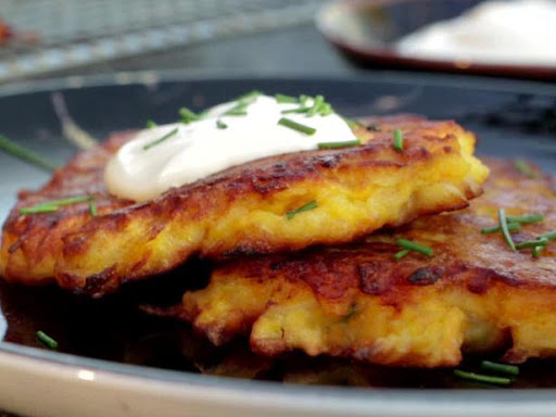 Set a large cast-iron or heavy-bottomed skillet over medium heat. Add the oil. Working in small batches, drop about 3 tablespoons per latke into the skillet just before the oil begins to smoke. Flatten each slightly with a slotted metal spatula. Make sure to not overcrowd the skillet.