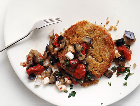 Quinoa Cakes with Eggplant-Tomato Ragù and Smoked Mozzarella