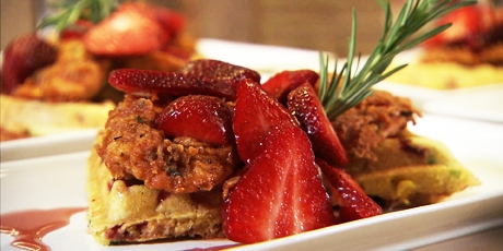 Fried Chicken and Strawberry Jalapeno Sweet Corn Waffles