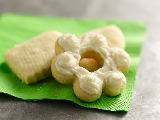 On work surface sprinkled with additional powdered sugar, roll half of dough at a time to 1/4-inch thickness. Cut with cookie cutters. Use metal spatula to transfer cookie cut-outs to cookie sheets, placing cut-outs about 1 inch apart.
