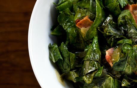 - 2 pounds collard greens, stems removed, sliced into 3-inch-wide strips (can substitute kale or chard)