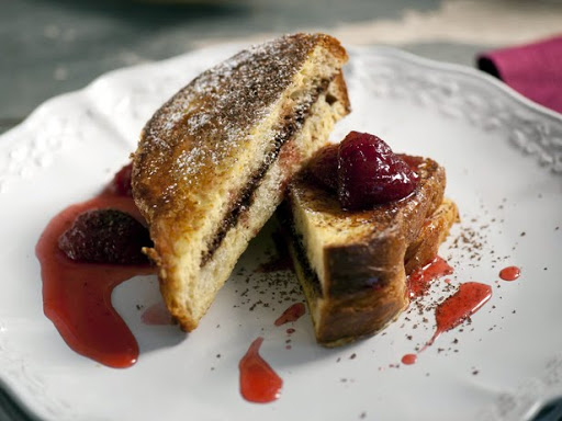 Chocolate Mascarpone Stuffed French Toast with Strawberry Syrup