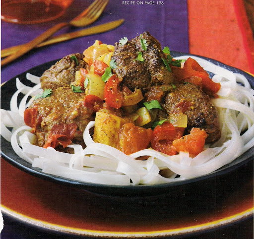 5. When ready to serve, reheat sauce and add meat. Simmer together for 5 to 8 minutes or until meat is hot and a little more cooked. Sprinkle with coriander just before serving.