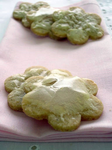 Makes about 30 medium-size cookies – I halved the recipe and got 35 cookies with a 5cm flower cutter