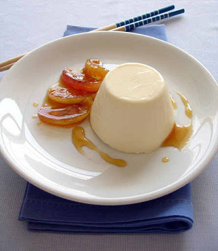 To serve, briefly dip panna cotta moulds into boiling water and invert onto serving plates. Serve with sake apples to the side, drizzled with extra syrup.