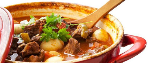 Add the potatoes. Cook for 45 minutes, or until the beef is fork tender. Season to taste with salt and pepper. Serve immediately