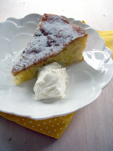 Leave to cool in the tin for 10 minutes. Remove the cake from the tin and place on a serving plate. Dredge heavily with the extra caster sugar. Cut the cake into generous wedges and serve warm with a spoonful of clotted cream, if you like – I served it with thick yogurt.