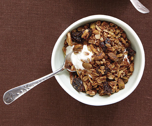 Wake up to a fresh batch of cardamom-scented granola, which becomes crisp overnight in the cooling oven. It’s delicious with almonds, pistachios, and dried cherries, but you can use any nuts and dried fruit you like. Serve with yogurt or milk.