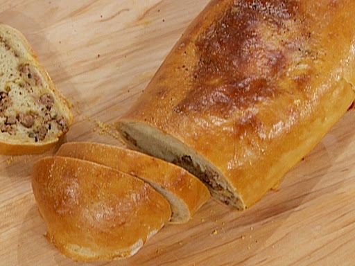 Bake the sausage bread for 35 to 40 minutes, or until golden brown and cooked through. Allow bread to stand 10 to 15 minutes before slicing. To serve, slice the bread into 1-inch pieces and serve warm.