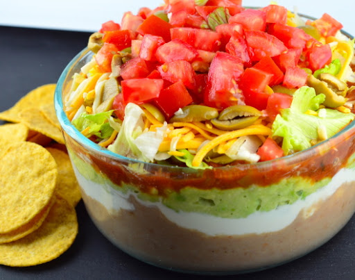 Then layer guacamole, salsa, lettuce, tomato, and cheese - in that order.