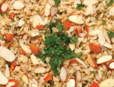 Add all ingredients to inner pot, except toasted almonds. Close lid, press the Steam/Cook button and cook until liquid evaporates, about 20 minutes. Allow to stand for 10 minutes. Spoon into a serving bowl, top with toasted almonds and serve immediately.