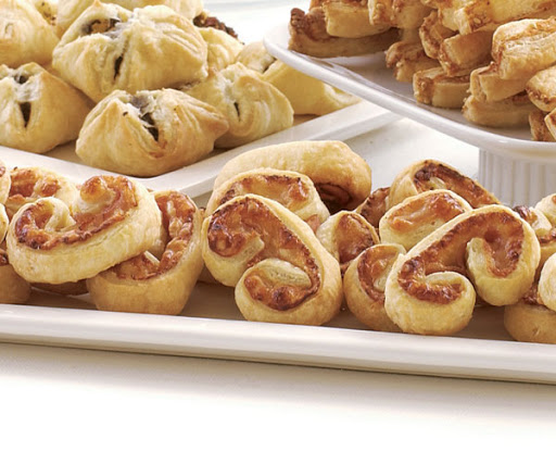 With a very sharp knife, slice each band into about 22 pieces, just under 1/2-inch each. Arrange the palmiers on two parchment-lined or nonstick baking sheets and bake until deep golden brown and no longer doughy in the center (break one open to be sure), 10 to 12 minutes. Be careful not to burn the bottoms. Let cool on a rack and serve just slightly warm or within an hour if possible.