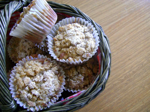 The muffins are very nice and moist and have a sweet, cruchy streussel and nuts topping.