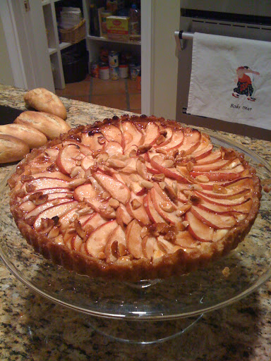 Bake 45 minutes to 1 hour. Rotate the pan once during cooking. Heat the apricot jam and brush over the apples. Loosen the tart with a metal spatula so it doesn't stick to the paper.