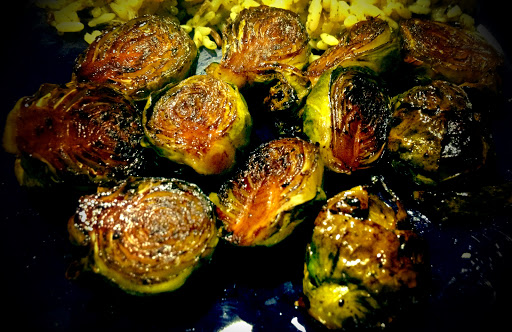 • 10-12 Brussels sprouts, trimmed and cut in half