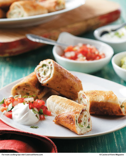 Spread about ¼ cup cream cheese mixture on one side of each tortilla all the way to the edges. Roll up tortillas and fry, seam side down, in batches, in sauté pan with drippings, over medium heat until browned, about 5 minutes. Slice tortillas into thirds; serve with pico de gallo or guacamole.