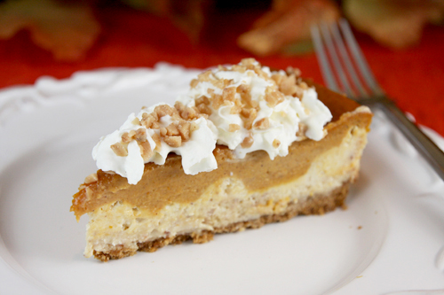 Mix pumpkin, whipping cream, 2/3 cup sugar, the cinnamon, pumpkin pie seasoning, salt and remaining 3 eggs just until blended. Slowly and carefully spoon over cheesecake layer.