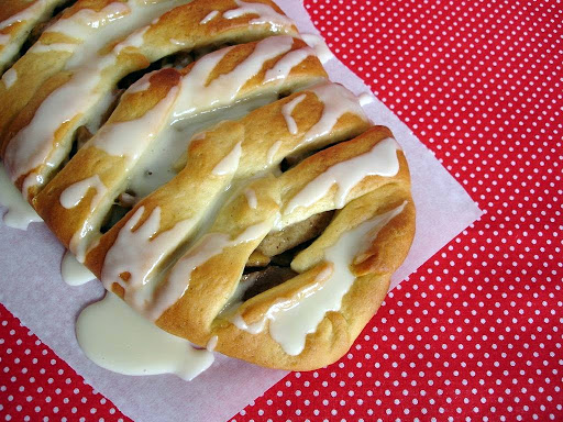 Place large sheet of foil on work surface; spray with nonstick spray. Turn dough out onto foil. Roll out to 14x12-inch (35x30cm) rectangle. Sprinkle cookie crumbs in 4-inch-wide (10cm) strip down center, leaving ½-inch (1.25cm) border at top and bottom. Arrange apples with any juices atop crumbs. Starting ½ inch (1.25cm) from each long side of apples, cut straight to edge of dough at 1-inch (2.5cm) intervals, making about 13 strips on each side. Fold dough strips alternately and on slight angle over filling, forming lattice. Seal open ends of dough.
