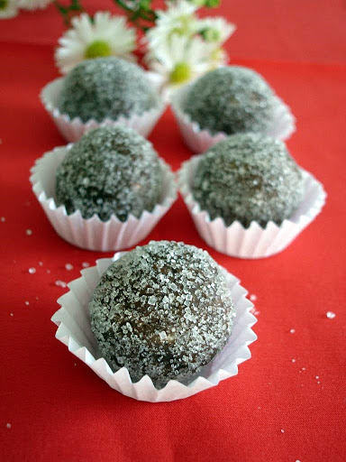 **you can dip the balls in tempered semisweet chocolate, instead of rolling them in sugar; 500g chocolate would be enough