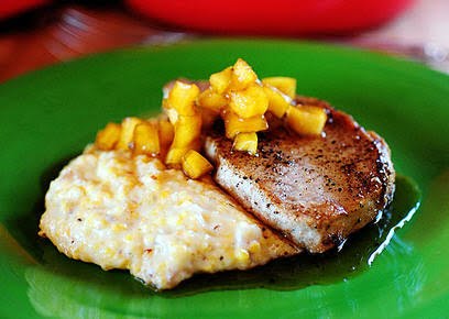 Serve pork chops on top of a generous helping of Creamy Cheese Grits (mashed potatoes are good, too) and spoon the apple-maple sauce over the top, allowing the liquid to drip over the grits.
