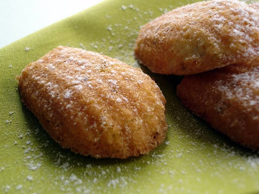 Pistachio and orange blossom water madeleines