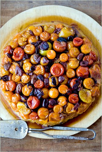 5. Bake tart until crust is puffed and golden, about 30 minutes. Let stand for 5 minutes, then run a knife around pastry to loosen it from pan, and flip tart out onto a serving platter. Cut into wedges and serve immediately.
