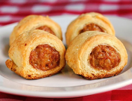 Roll each portion of the rested dough into a long rectangle the same width as the sausage links and between 1/8 and 1/4 inch thick. Using scissors, carefully remove the casing from each sausage and place it on the dough. Roll the sausage in the pastry, cutting the pastry rectangle in a straight line when the sausage is completely surrounded with pastry and slightly overlaps. Egg wash the edges of the dough where they meet. Press well to seal. Egg wash the tops of the sausage rolls if desired. Cut into individual pieces and place on a baking sheet. Chill for 20 minutes in the fridge.