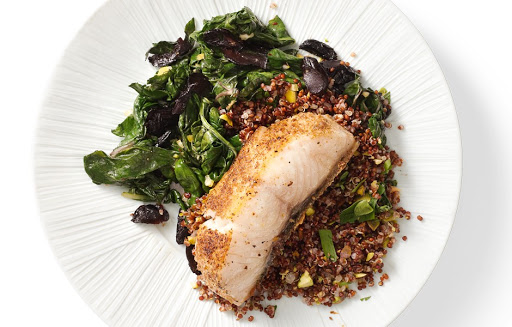 Mix olives and reserved lemon mixture into chard. Season with salt, pepper, and more crushed red pepper flakes, if desired. Serve fish with chard.