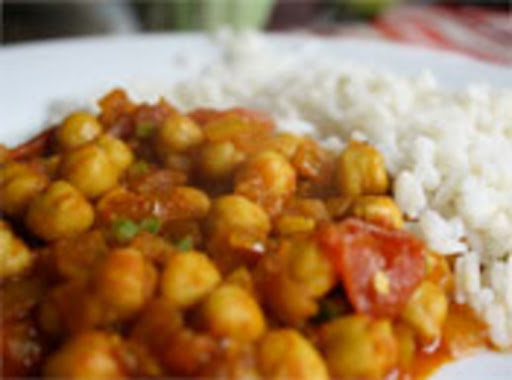 4.Dump in the chickpeas and the pour in the water. Stir until combined, and then bring mixture to a boil. Reduce heat to a simmer. Add the paprika, garam masala, salt, and lemon juice. Cover and cook at a simmer for 10 minutes.