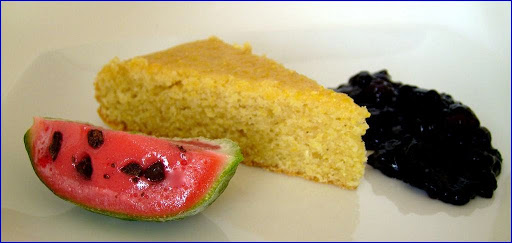 This slightly sweet Cornmeal Cake doesn’t need icing, just a bit of fresh fruit alongside. (The "watermelon" recipe is posted separately.)