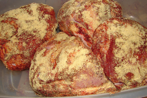 PLACE ROAST IN TUPPERWARE CONTAINER WITH LID AND IN FRIDGE OVER NIGHT.
