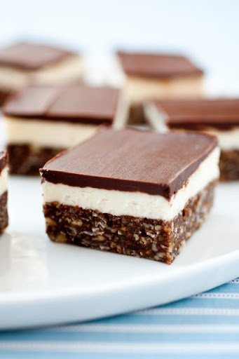 Melt chocolate and butter over low heat. Cool. Once cool, but still liquid, pour over second layer and chill in refrigerator.