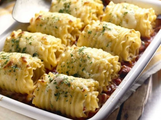 2. On every lasagna piece, pour the half a cup of sauce and roll.