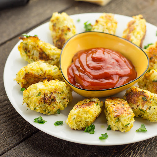 This recipe can get a little messy, but I promise it’s worth it. Use your hands to shape the tots using about 1 1/2 tablespoon of cauliflower mix for each. Before baking, the tots are a little fragile and might be difficult to shape. However, they will firm up in the oven. You may add an extra dash of breadcrumbs to keep them together, but keep in mind the nutritional value will change.