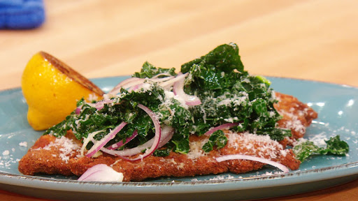 Basic Chicken Milanese with Wilted Kale, Parmigiano-Reggiano, Pan-Roasted Lemon and Olive Oil
