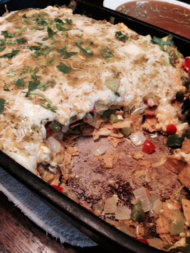A basic chilaquiles (chill-a-kee-lays)recipe that will help you clear out the vegetables in your crisper drawer and tastes great when finished! I serve this with sliced tomatoes, guacamole, and sour cream for people to add as they like.