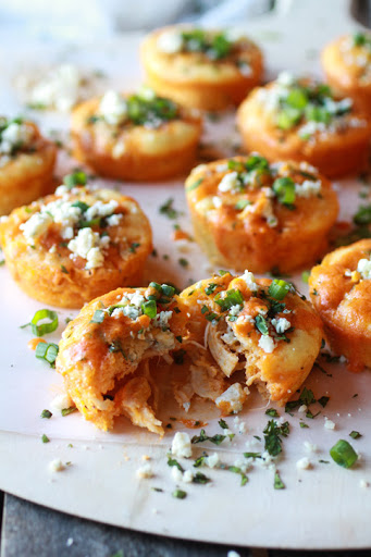 6 Top each with blue cheese, chopped green onion, chopped .cilantro and a drizzle of reserved Buffalo sauce. Serve warm