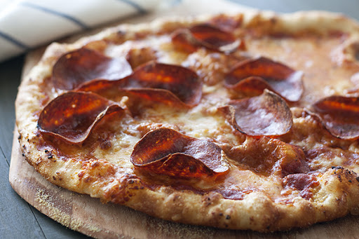 Using peel, transfer to a work surface to slice. Repeat, allowing pizza stone to reheat under broiler for 5 minutes between pizzas.