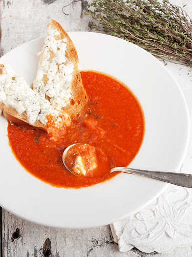 30 Minutes Homemade Tomato Soup with Warm Goat Cheese Toast