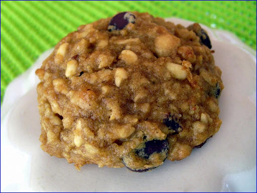 In a separate bowl, mix together the oil, applesauce, sugar, maple syrup, and vanilla. Stir the wet mixture into the dry and mix well. Stir in the rice krispies, chocolate chips, and peanuts.