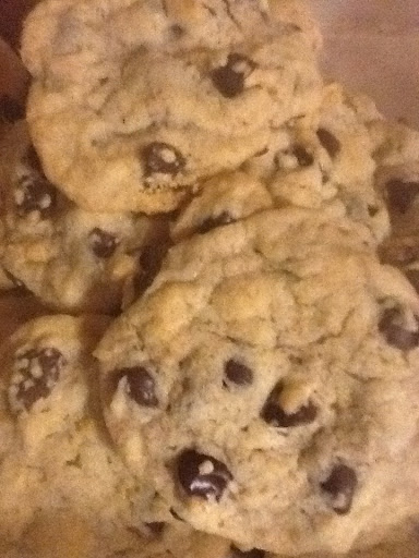 Gradually stir in flour, baking soda and salt. Add chocolate chips. Drop by teaspoonful on to lightly greased cookie sheets.