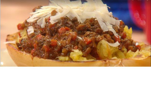 In large pot, heat olive oil, 3 turns of the pan, over medium-high heat. Add mushrooms and brown well, 15 minutes or so. Add thyme, salt, pepper, carrot, shallots, onions and garlic; cook to tender. Stir in tomato paste, add sherry or Marsala, bay leaf and stock from the mushrooms, leaving behind any sediment that may have settled on the bottom of the pot. Chop and add porcinis and milk, and simmer sauce to reduce over low heat for 30 minutes. Top spaghetti squash with ragu and cheese and serve half a squash per portion.