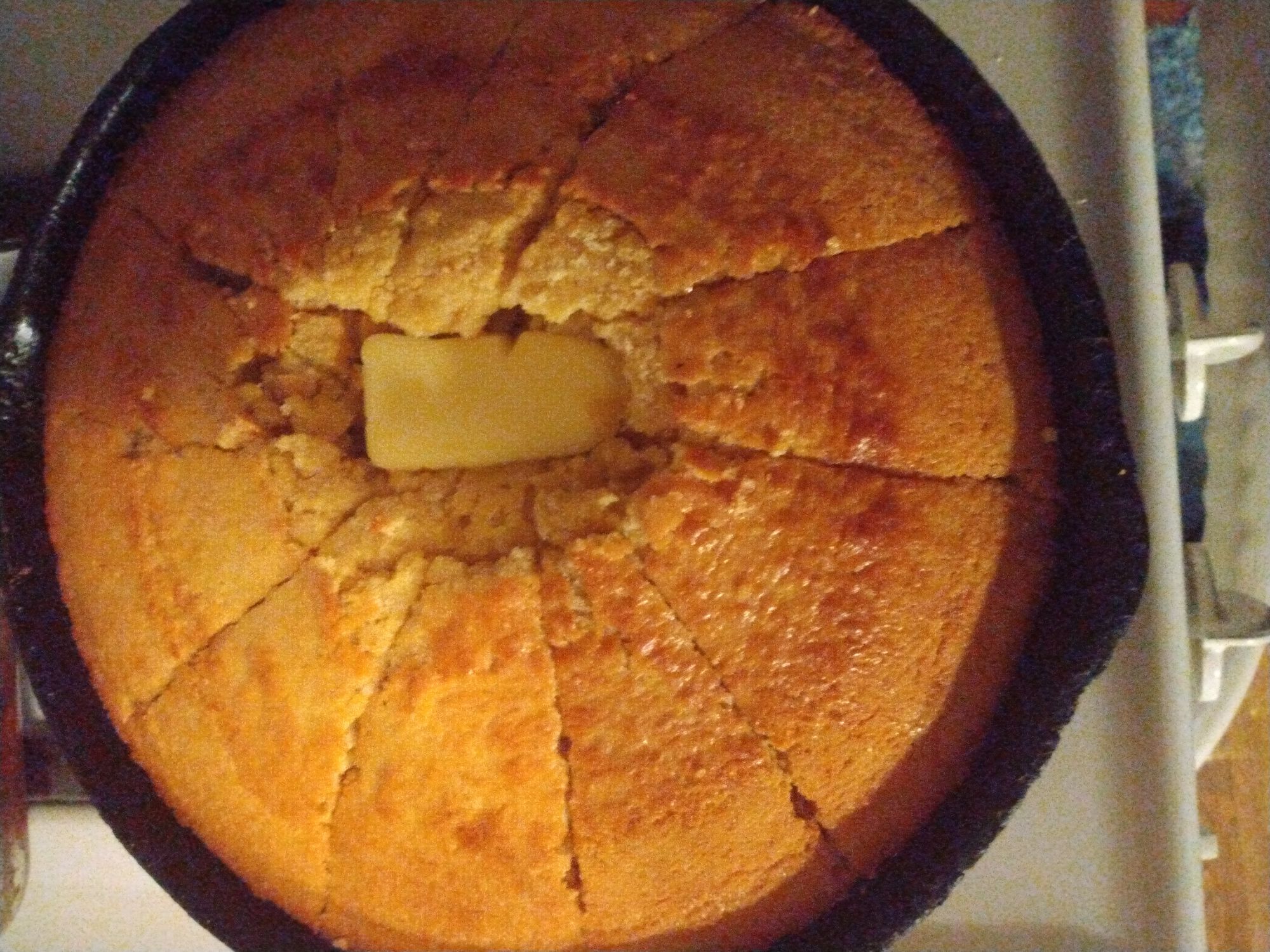 In a large bowl, sift or stir together the cornmeal, flour, sugar, baking powder and salt. Set aside.