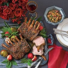 Season chops with salt and pepper; brown on both sides in olive oil in large skillet. Spoon off fat. Stir in chicken broth, spaghetti sauce, onion and green pepper. Bring to boil; cook, covered, 15 minutes. Stir in rice and olives. Arrange zucchini in border around edge. Cover and cook about 45 minutes longer, or until chops are tender.