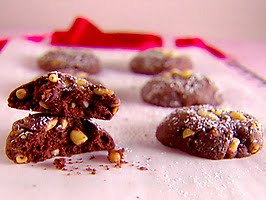 Combine the butter, powdered sugar, cocoa powder, vanilla, and salt in a large bowl. Using a hand mixer, beat the mixture until creamy, about 2 minutes. Add the flour, pine nuts, and chocolate. Stir until just mixed.